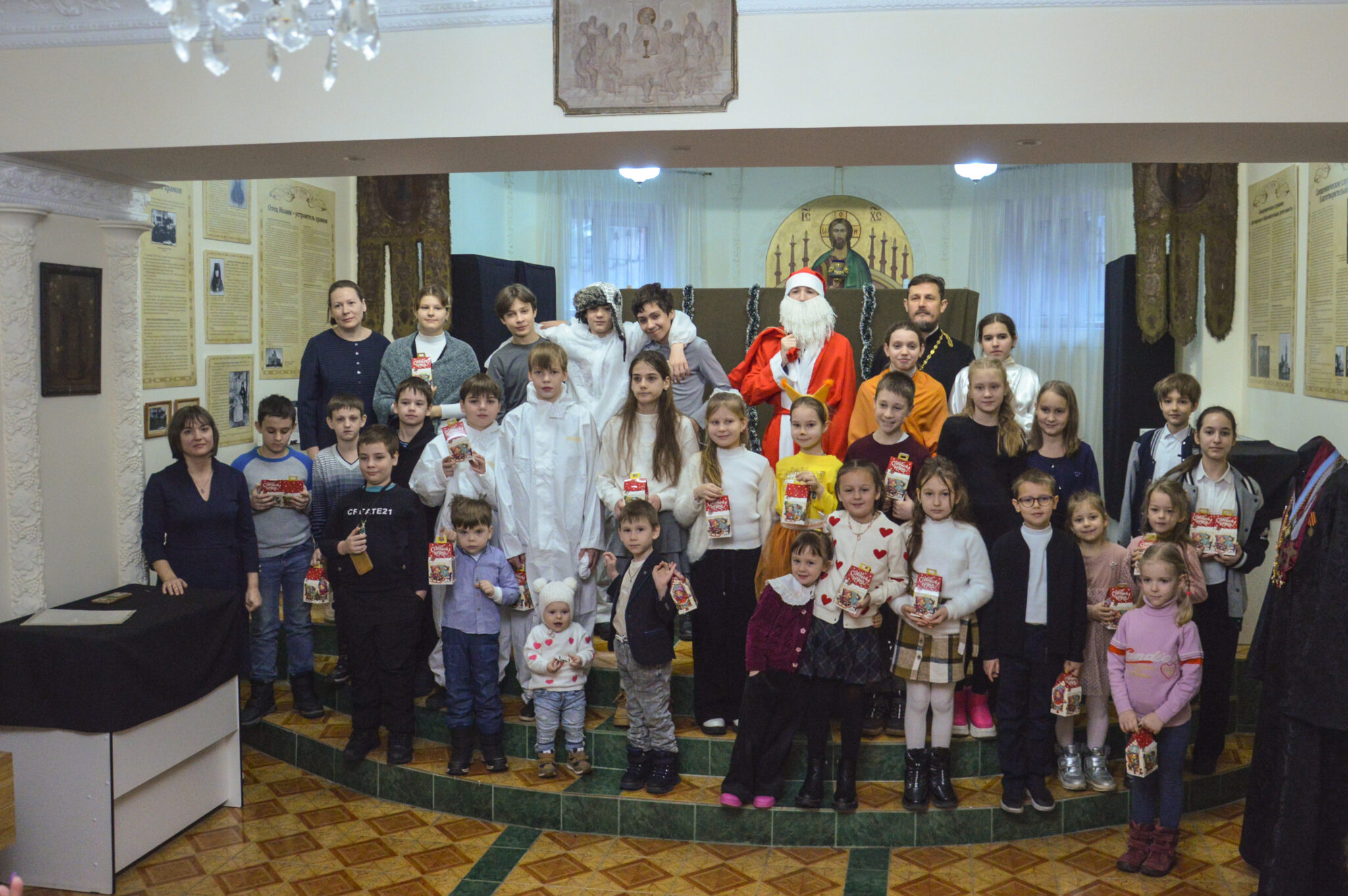 Младшая группа воскресной школы исполнила песню «Мы маленькие свечки». Воспитанники средней и старшей группы показали зрителям сценку по мотивам притчи «Как мальчик Христа в гости ждал» и сказочную инсценировку «Снежная королева».